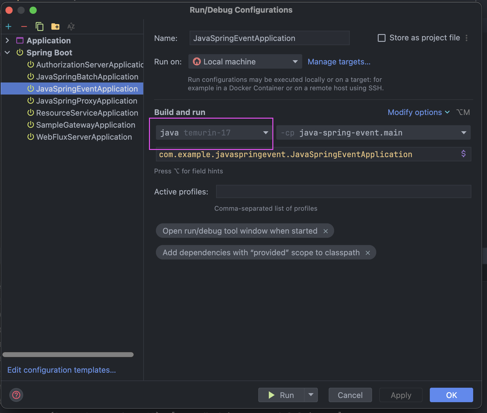 Edit Configuration에서 자바 버젼을 확인 후 프로젝트에 맞는 자바 버젼으로 바꿔주자